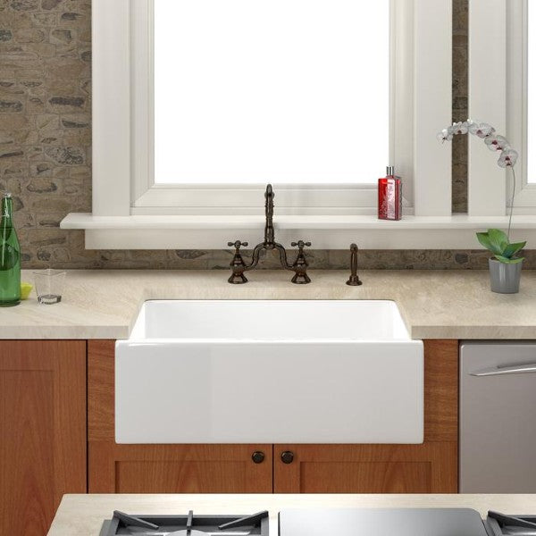 FS30 30" White Single Bowl Fireclay Apron Front Farmhouse Sink by Barclay Sinks