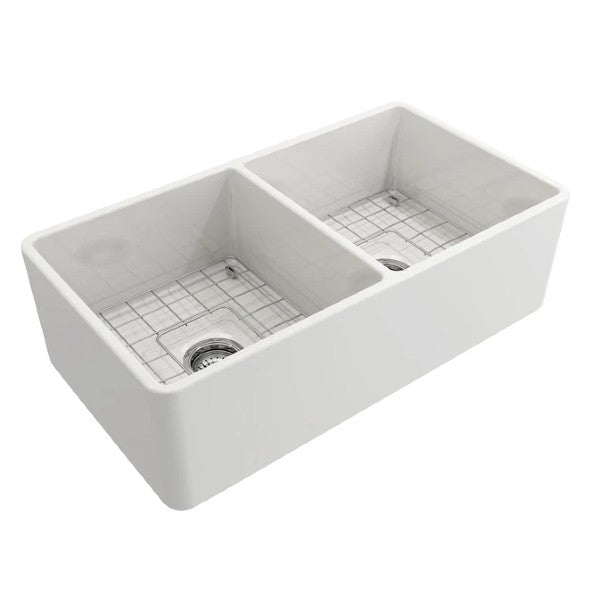 Barclay FSDB1530 Langley 33" White Fireclay Double Bowl Farmhouse Kitchen Sink