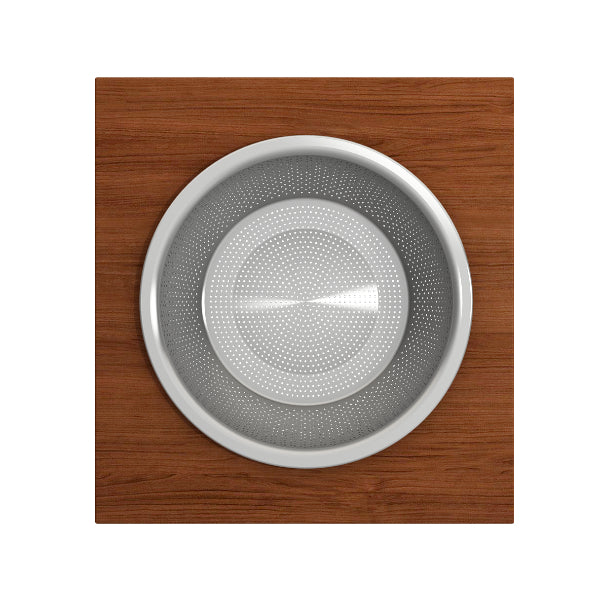2320 0014 Wood Board with Large Round Stainless Steel Mixing Bowl and Colander for 1616, 1618, and 1633 (inner ledge) by BOCCHI