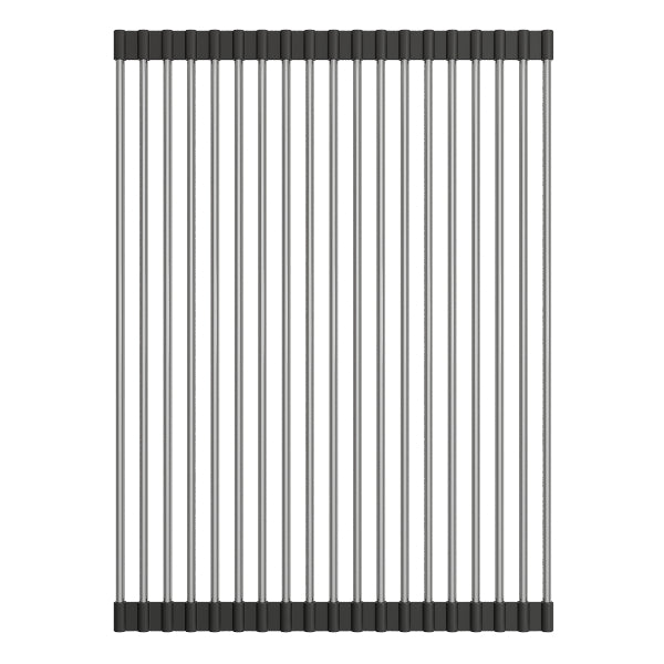 Roller Mat designed for use with select BOCCHI Fireclay workstation sinks. Featuring food-grade safe stainless steel with black rubber edging to add function and style to your workspace.
