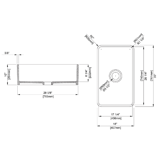 • Can accommodate a garbage disposal, no special flange required; Requires a minimum 33 in. wide base cabinet for apron-front sinks