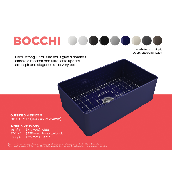 BOCCHI Aderci Ultra-Slim Fireclay Farmhouse Sink Specifications