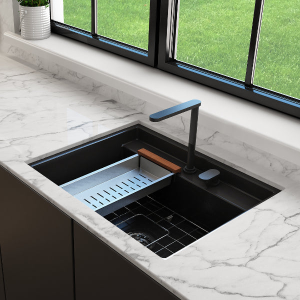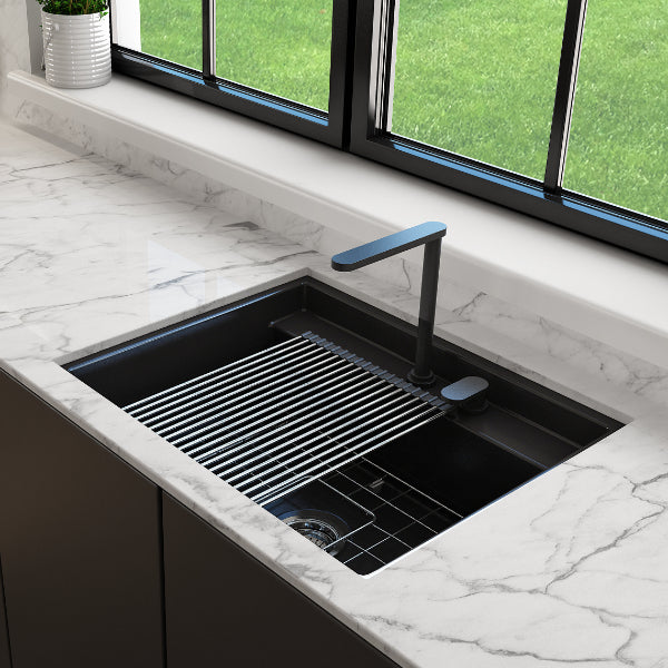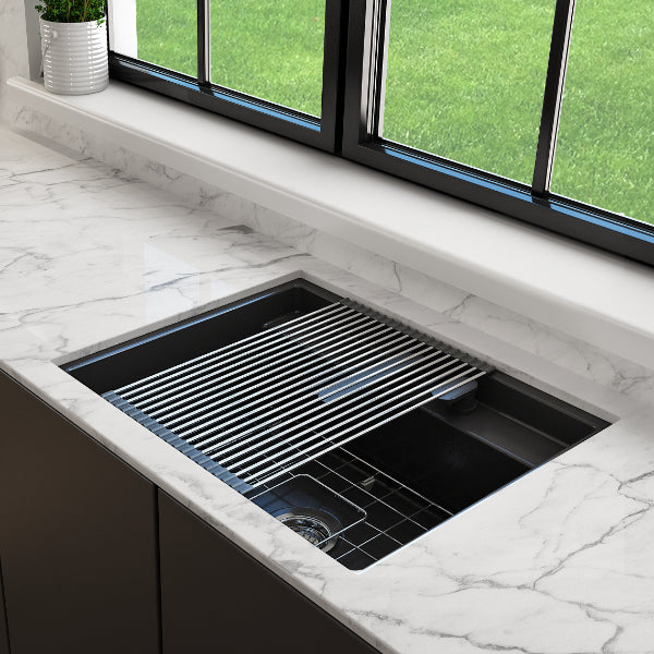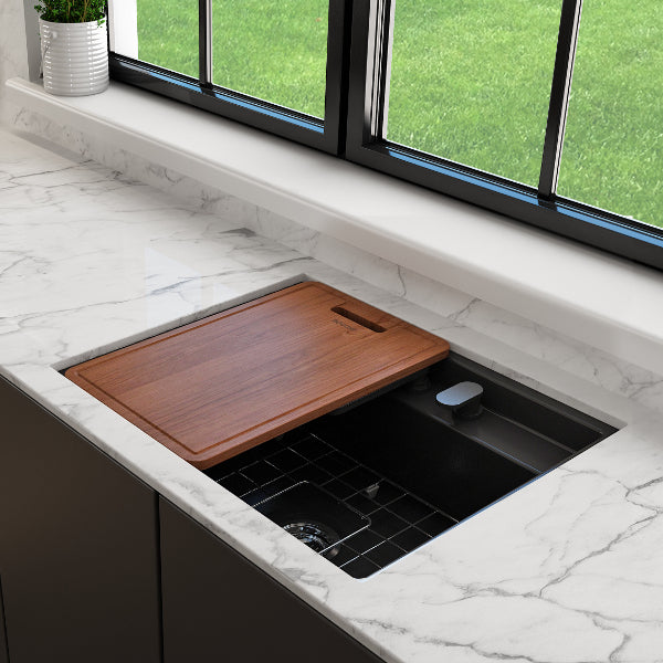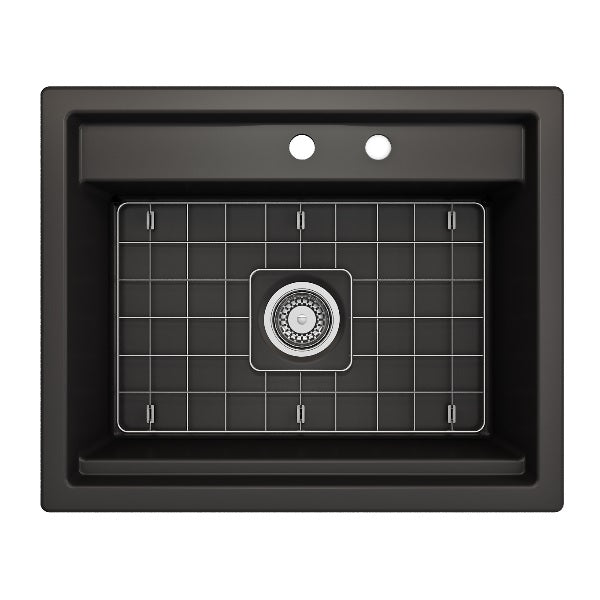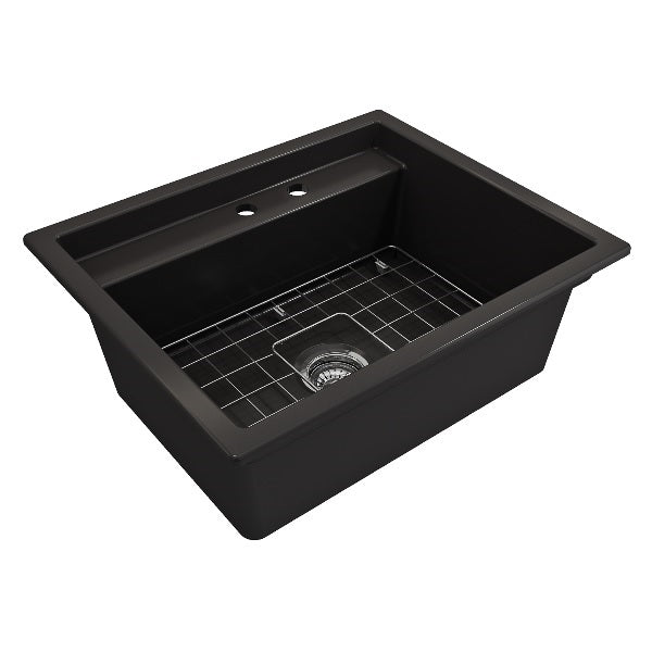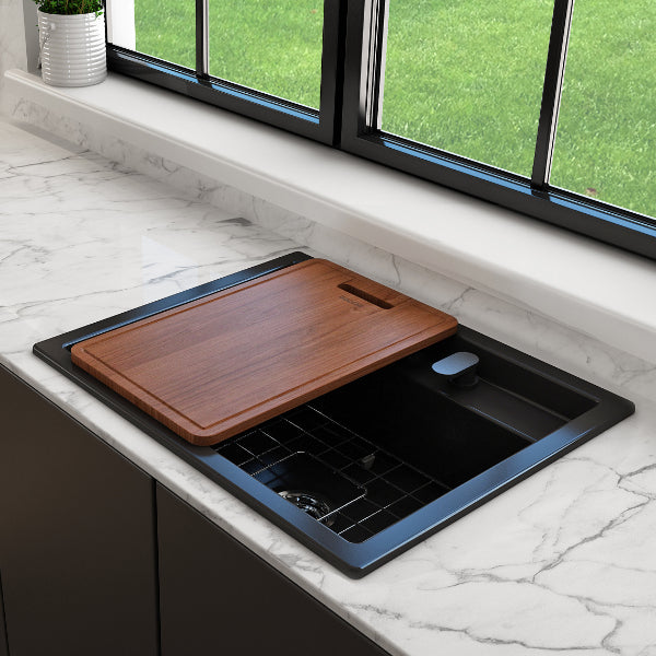 BOCCHI Baveno Uno 27" Matte Black Single Bowl Fireclay Dual-Mount Integrated Workstation 2-hole Sink