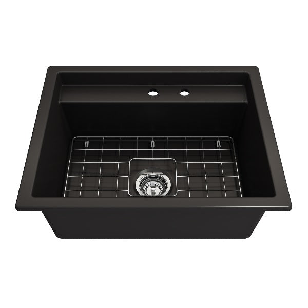 Baveno Uno 27" Matte Black Single Bowl Fireclay Dual-Mount Integrated Workstation 2-hole Sink by BOCCHI