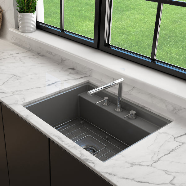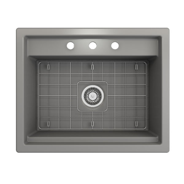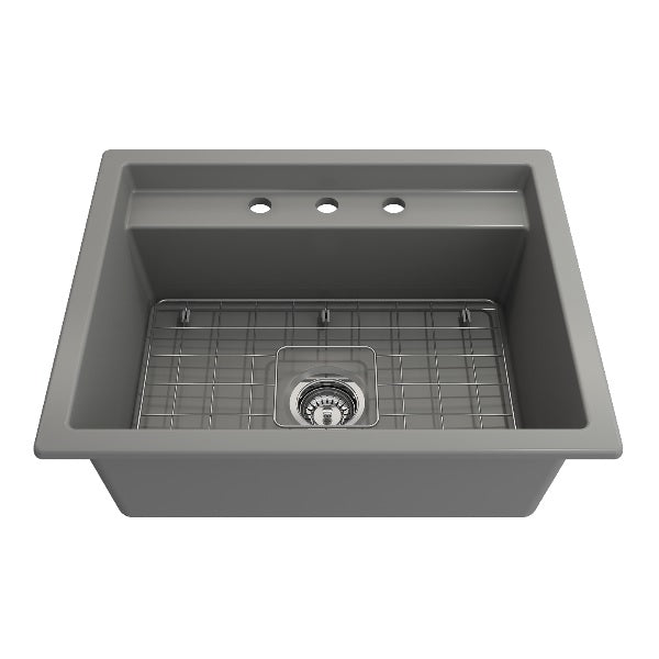 Baveno Uno 27" Matte Gray Fireclay Single Bowl Dual-Mount 3-hole Sink with Integrated Workstation with Accessories by BOCCHI