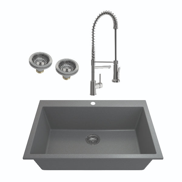 Campino Uno 33" Concrete Gray Single Bowl Dual Mount Granite Composite Sink & Strainer w/ Maggiore 2.0 Stainless Steel Faucet by BOCCHI