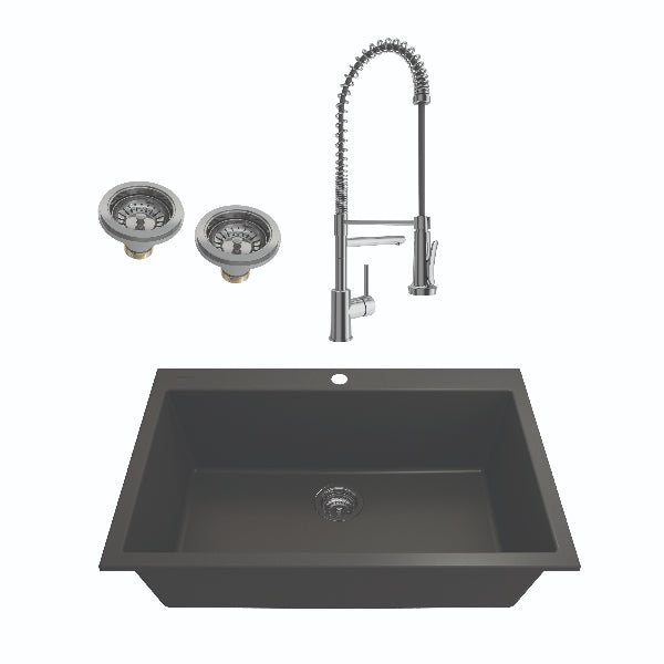 BOCCHI Campino Uno 33" Matte Black Single Bowl Granite Undermount Sink w/ Chrome Faucet