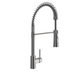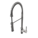 Pull-down kitchen faucet with ceramic cartridges and brass body. Features standard or needle spray with flexible, gooseneck weighted shower hose.