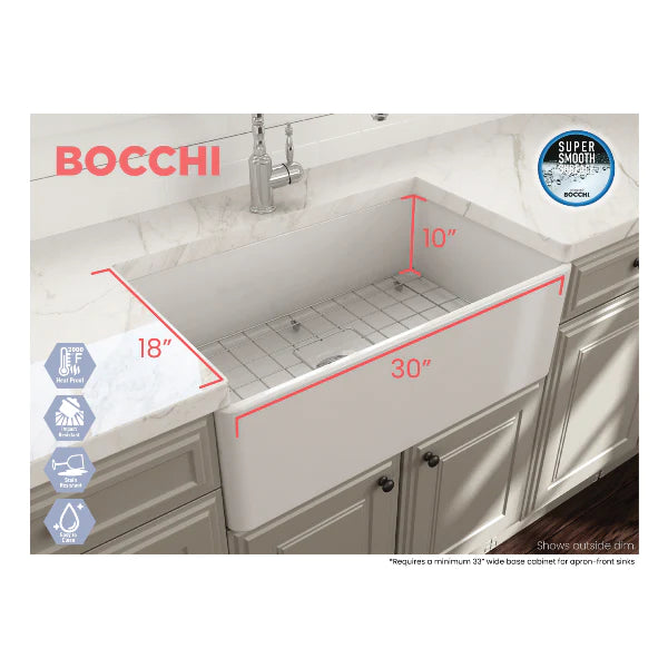 Bocchi Fireclay Farmhouse Sink 30" Classico Single Bowl W/ Grid Technical Sheet Click Here