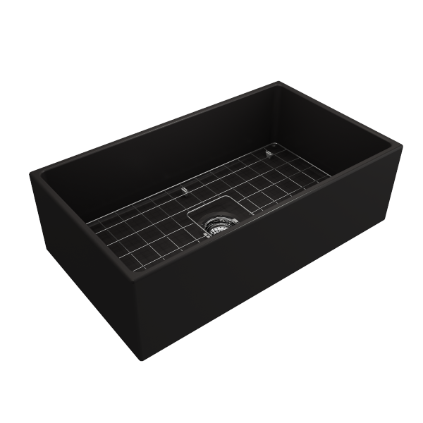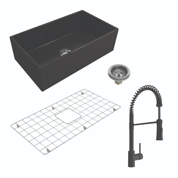 Contempo 33 Matte Black Fireclay Single Bowl Farmhouse Sink w/ Grid & Livenza 2.0 Matte Black Faucet by BOCCHI