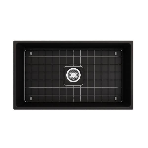 - Includes Matte Black Livenza 2.0 Kitchen Faucet, chrome strainer and removable, stainless steel bottom grid specially designed to protect both your sink and allow enough flex to cushion dishes when accidentally dropped into the sink