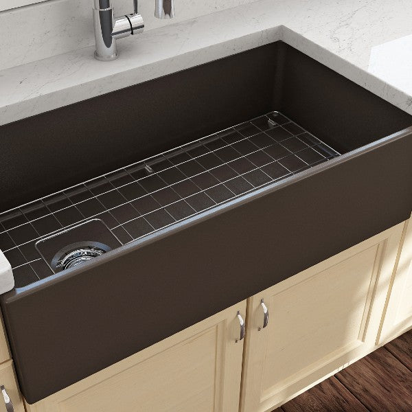 Contempo 36" Matte Brown Fireclay Single Bowl Farmhouse Sink With FREE Grid and Strainer by BOCCHI