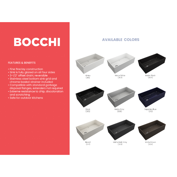 - Click here to learn more about the Bocchi Farmhouse sink styles and options