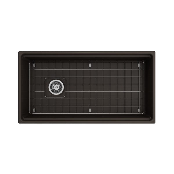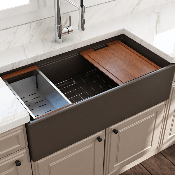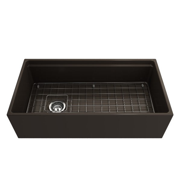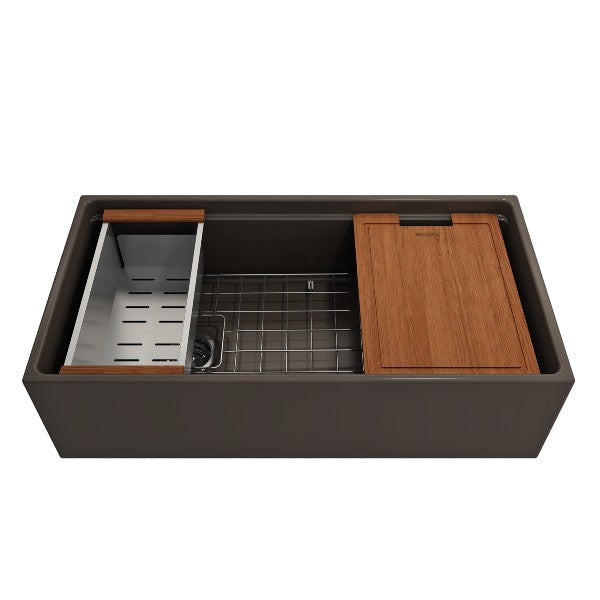 Contempo 36" Matte Brown Single Bowl Fireclay Farmhouse Sink w/ Integrated Work Station & Accessories by BOCCHI