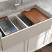 - Includes chrome strainers (2), wooden cutting board, deep colander, roller mat, and removable stainless steel bottom grids (2) specially designed to protect both your sink and allow enough flex to cushion dishes when accidentally dropped into the sink