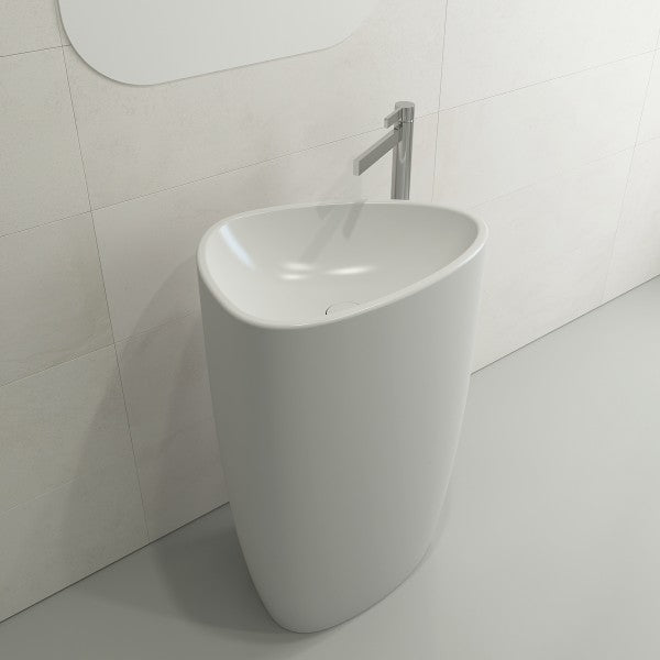 BOCCHI Etna 33" Matte White Monoblock Pedestal Bathroom Sink Fireclay w/ Matching Drain Cover