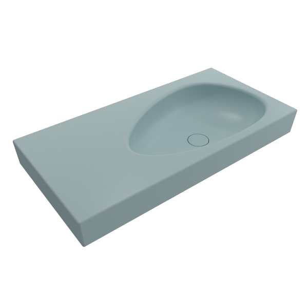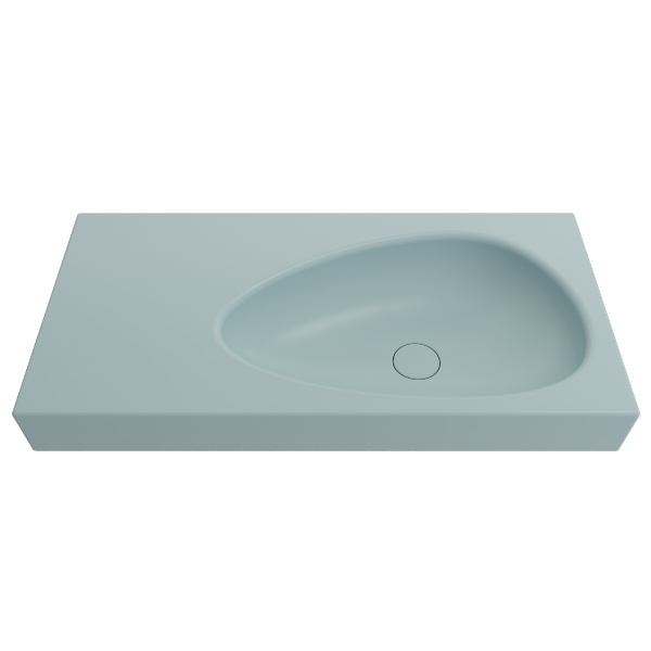BOCCHI Etna 35" Matte Ice Blue Fireclay Wall-Mounted Bathroom Sink w/ Matching Drain Cover