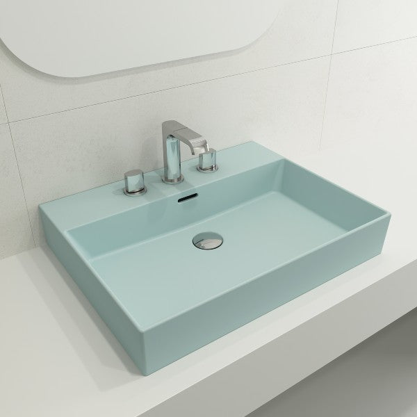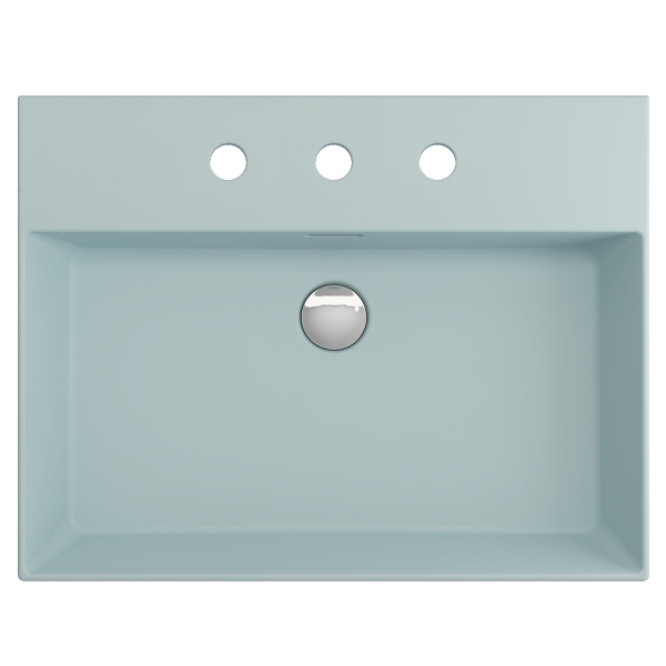 BOCCHI Milano 24" Matte Ice Blue 3-Hole Fireclay Wall-Mounted Bathroom Sink with Overflow