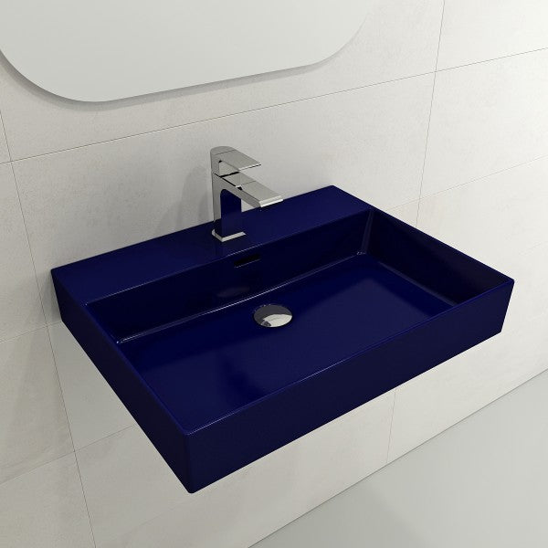 BOCCHI Milano 24" Sapphire Blue 1-Hole Fireclay Wall-Mounted Bathroom Sink with Overflow