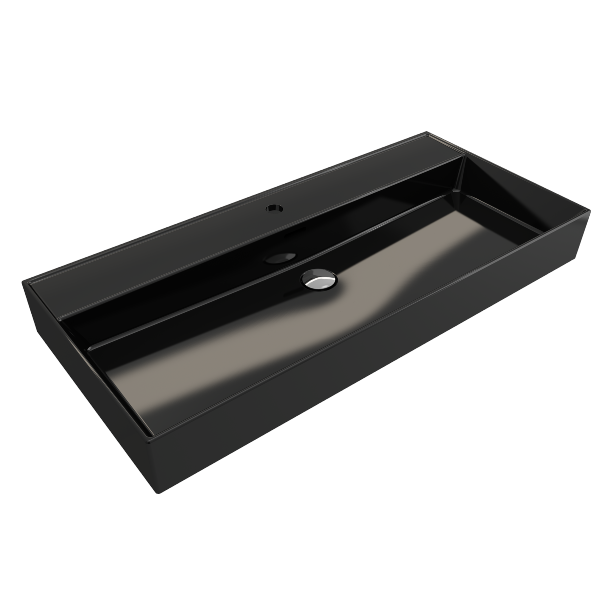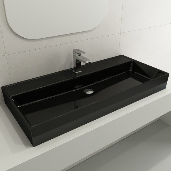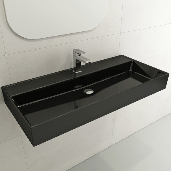 BOCCHI Milano 39" Black 1-Hole Fireclay Wall-Mounted Bathroom Sink with Overflow