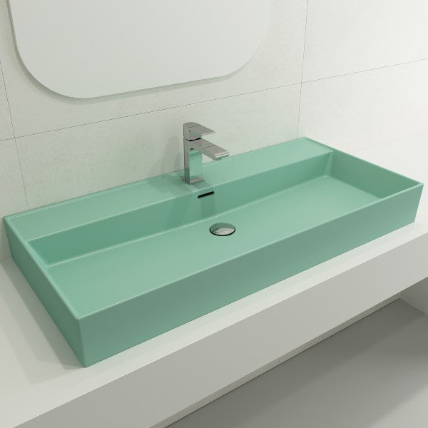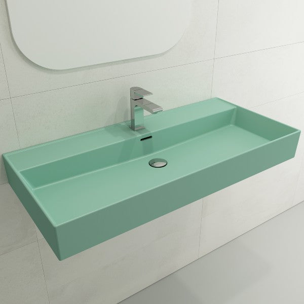 BOCCHI Milano 39" Matte Mint Green 1-Hole Fireclay Wall-Mounted Bathroom Sink with Overflow