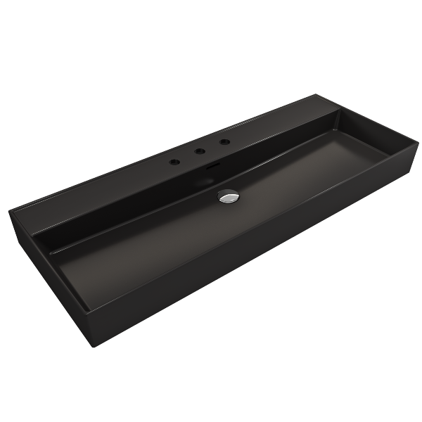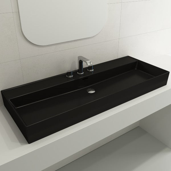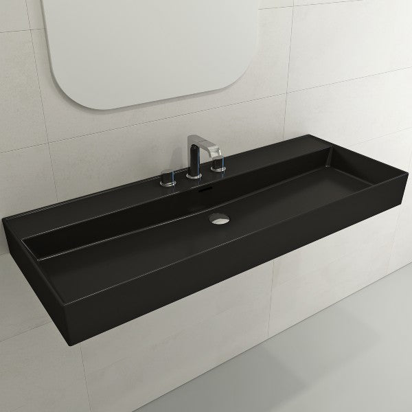 BOCCHI Milano 47" Matte Black 3-Hole Wall-Mounted Bathroom Sink Fireclay with Overflow