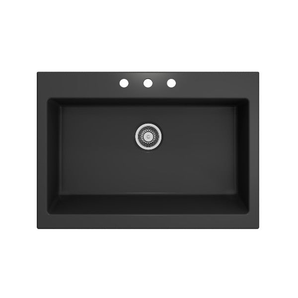 Bocchi Nuova 34" Dark Gray Single Bowl Fireclay Drop-In Sink w/ Grid and Strainer