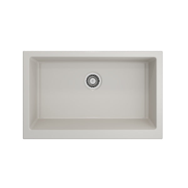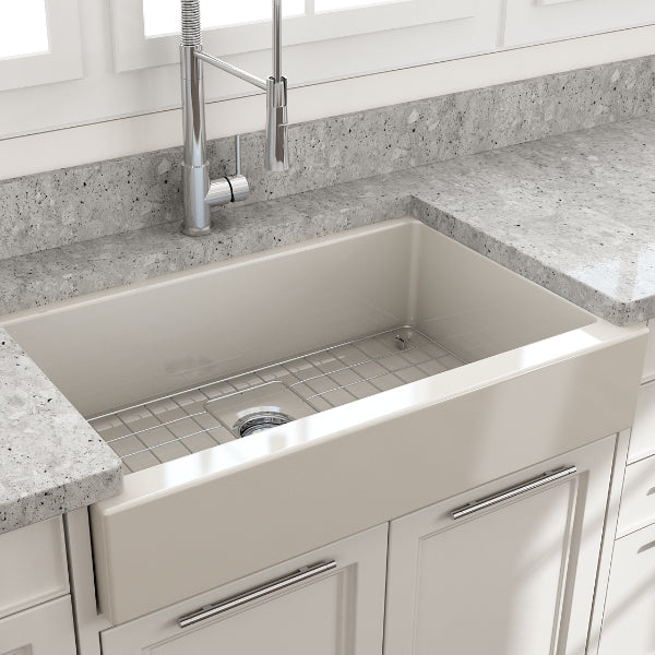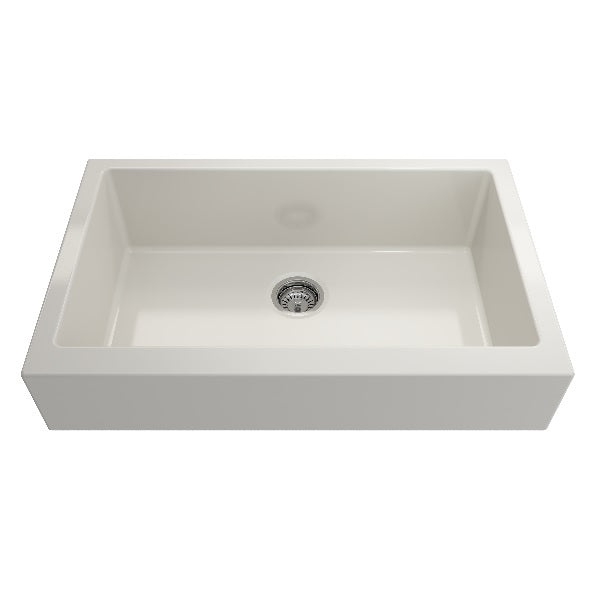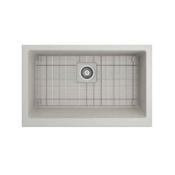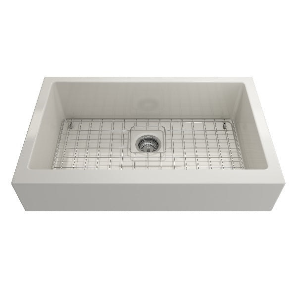 Nuova Pro 34" Biscuit Single Bowl Fireclay Short Apron Front Dual-Mount Sink with Protective Bottom Grid and Strainer by BOCCHI