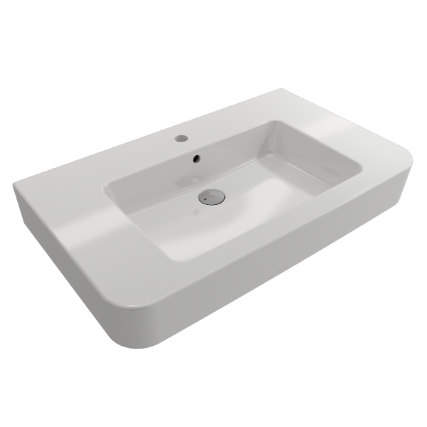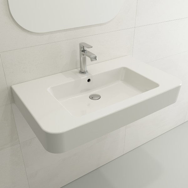 BOCCHI Parma 33" White 1-Hole Fireclay Wall-Mounted Bathroom Sink with Overflow