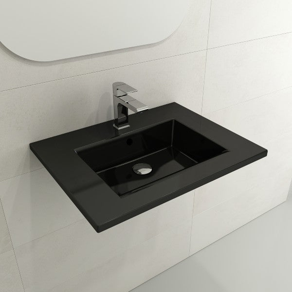 BOCCHI Ravenna 24" Black 1-Hole Fireclay Wall-Mounted Bathroom Sink with Overflow
