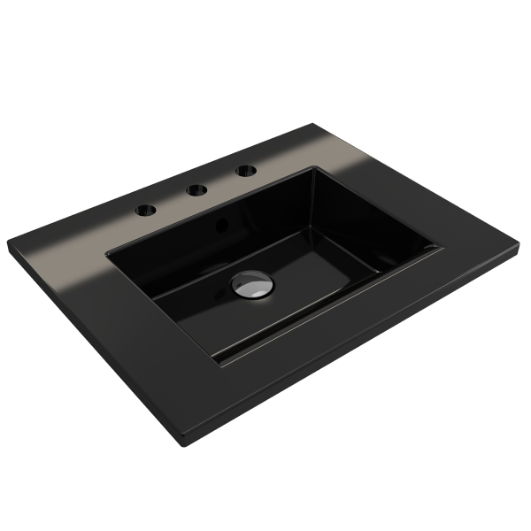 BOCCHI Ravenna 24" Black 3-Hole Fireclay Wall-Mounted Bathroom Sink with Overflow