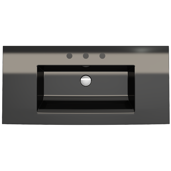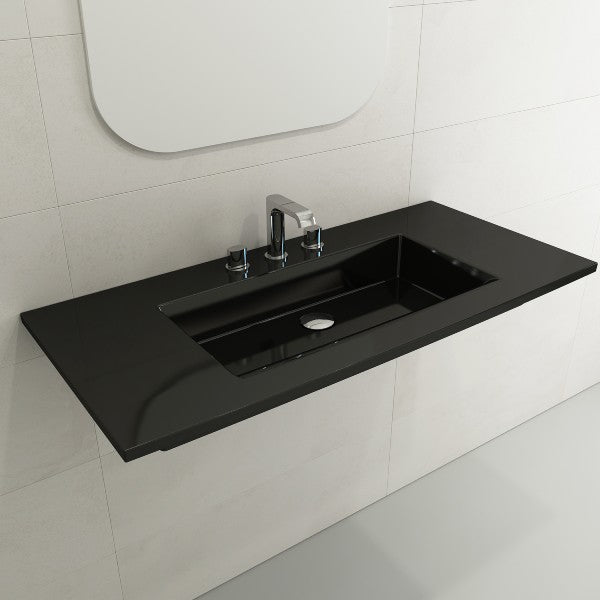 BOCCHI Ravenna 40" Black Fireclay 3-Hole Wall-Mounted Bathroom Sink with Overflow
