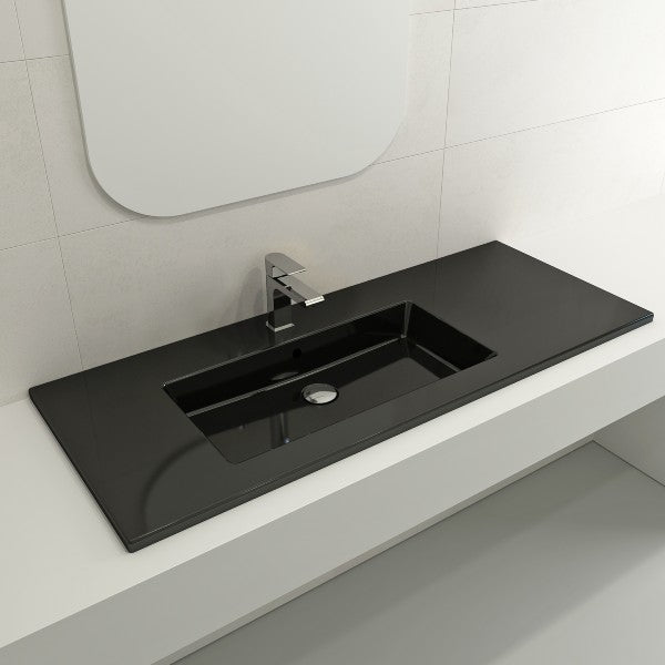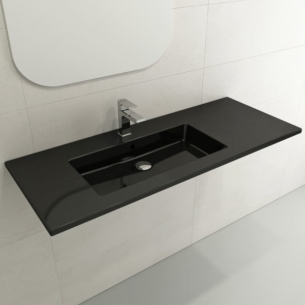 BOCCHI Ravenna 47" Black 1-Hole Fireclay Wall-Mounted Bathroom Sink with Overflow