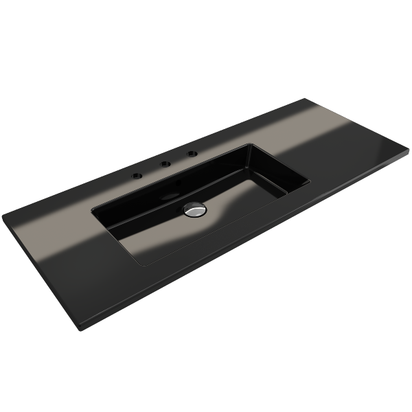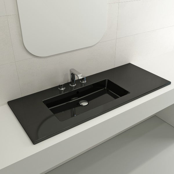 BOCCHI Ravenna 47" Black 3-Hole Fireclay Wall-Mounted Bathroom Sink with Overflow