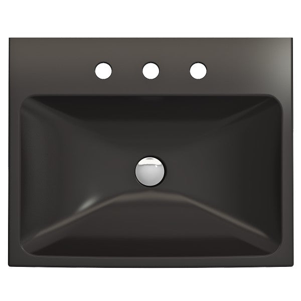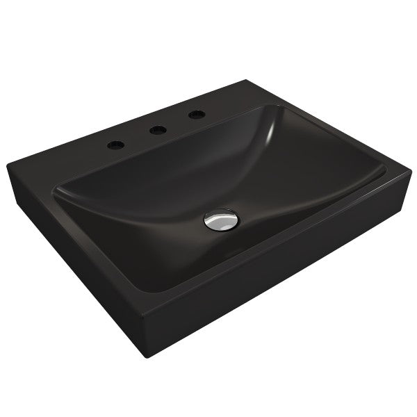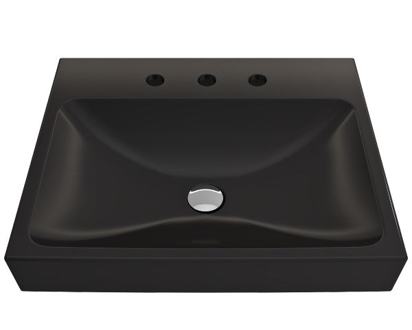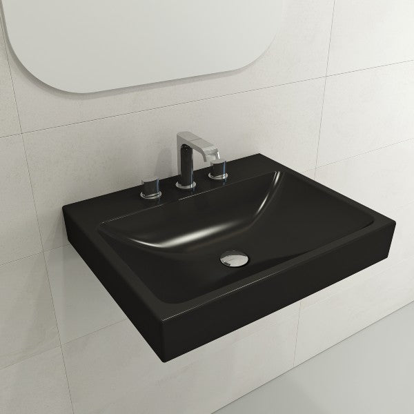 BOCCHI Scala Arch 23" Matte Black 3 Hole Wall Mounted Fireclay Bathroom Sink