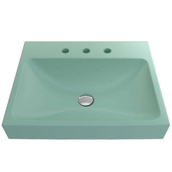 BOCCHI Scala Arch 23" Matte Mint Green 3 Hole Wall Mounted Fireclay Bathroom Sink