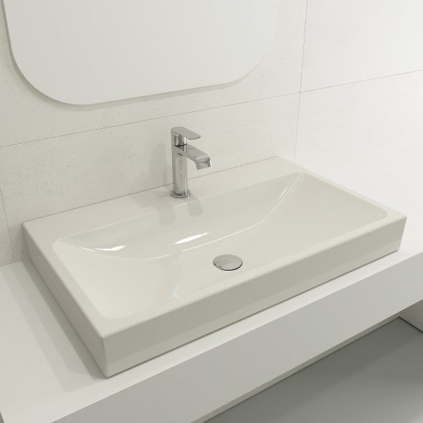 BOCCHI Scala Arch 32" Biscuit 1 Hole Wall-Mounted Fireclay Bathroom Sink