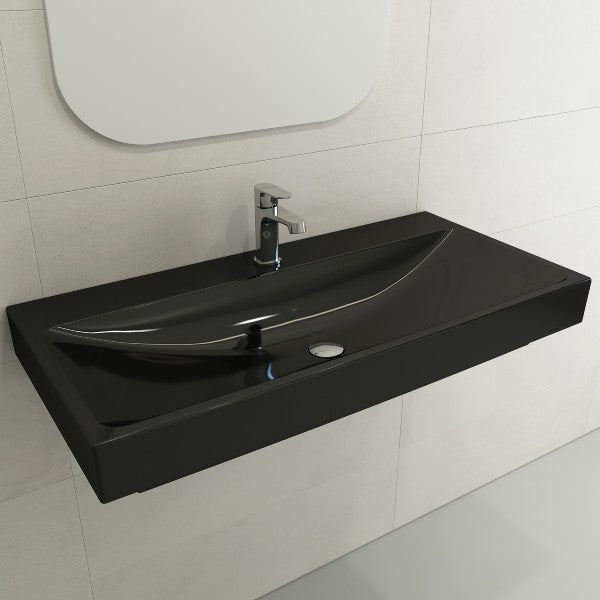 BOCCHI Scala Arch 39" Black 1-Hole Wall-Mounted Fireclay Bathroom Sink
