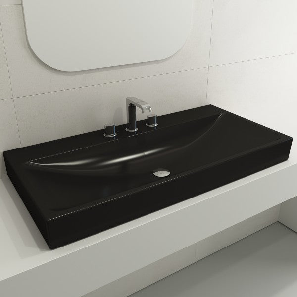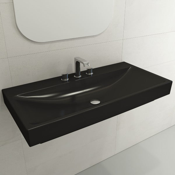 BOCCHI Scala Arch 39" Matte Black 3-Hole Wall-Mounted Fireclay Bathroom Sink