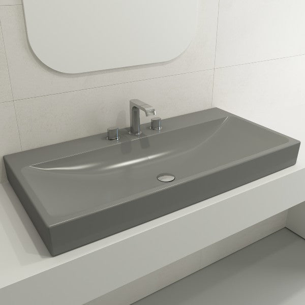 BOCCHI Scala Arch 39" Matte Gray 3-Hole Wall-Mounted Fireclay Bathroom Sink