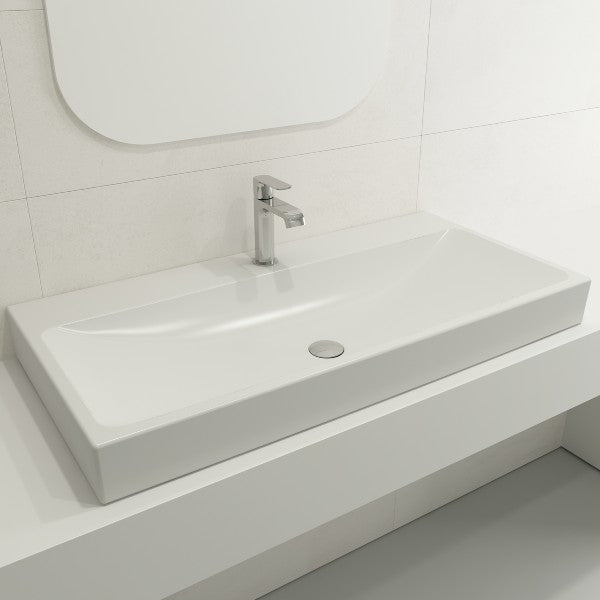 BOCCHI Scala Arch 39" Matte White 1-Hole Wall-Mounted Fireclay Bathroom Sink