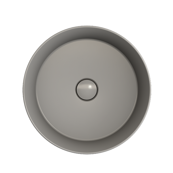 BOCCHI Sottile 15" Matte Gray Round Vessel Fireclay Bathroom Sink with Drain Cover