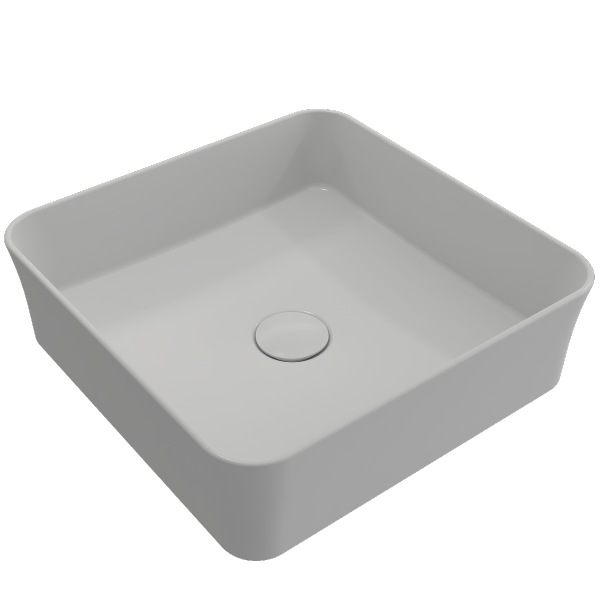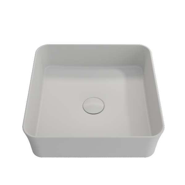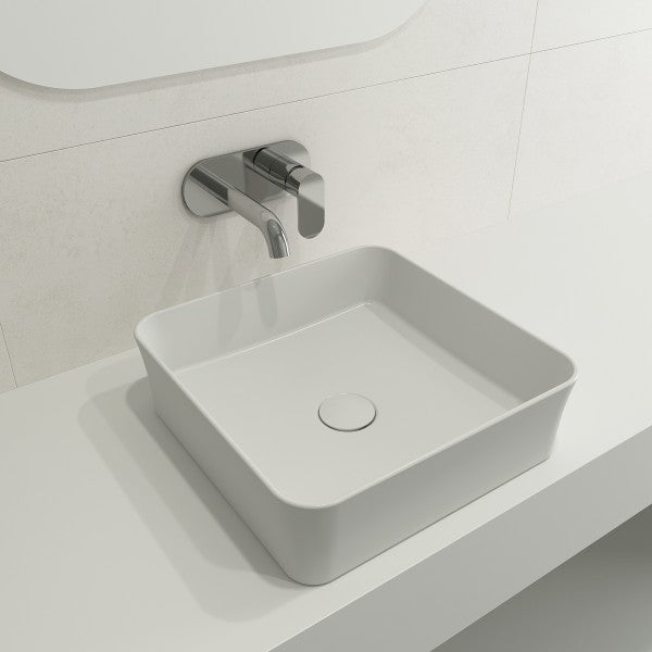 BOCCHI Sottile 15" Matte White Square Vessel Fireclay Bathroom Sink with Drain Cover