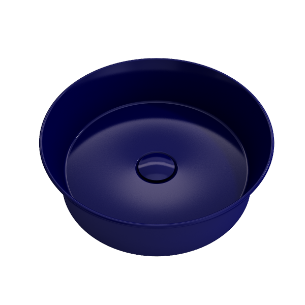 BOCCHI Sottile 15" Sapphire Blue Round Vessel Fireclay Bathroom Sink with Drain Cover