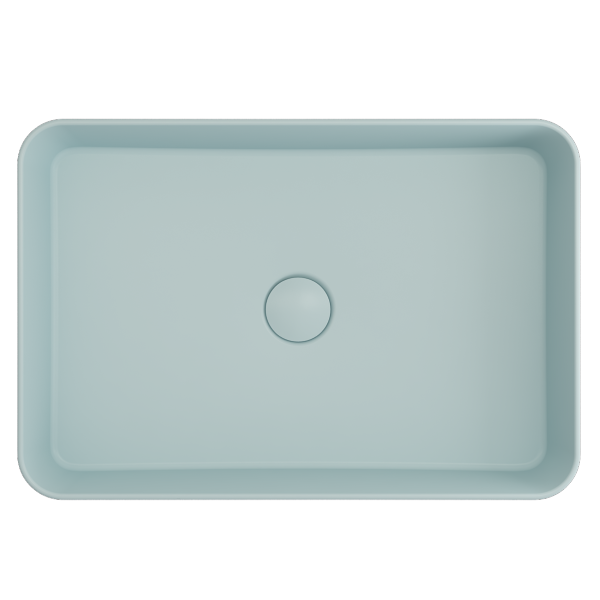 BOCCHI Sottile 21" Matte Ice Blue Rectangle Fireclay Vessel Bathroom Sink with Drain Cover