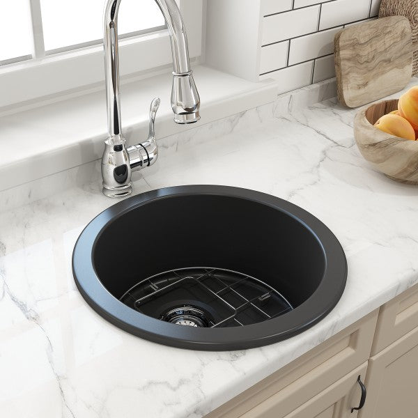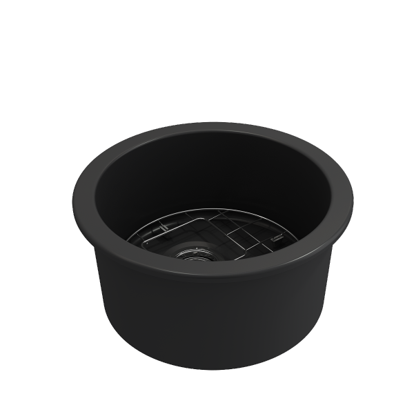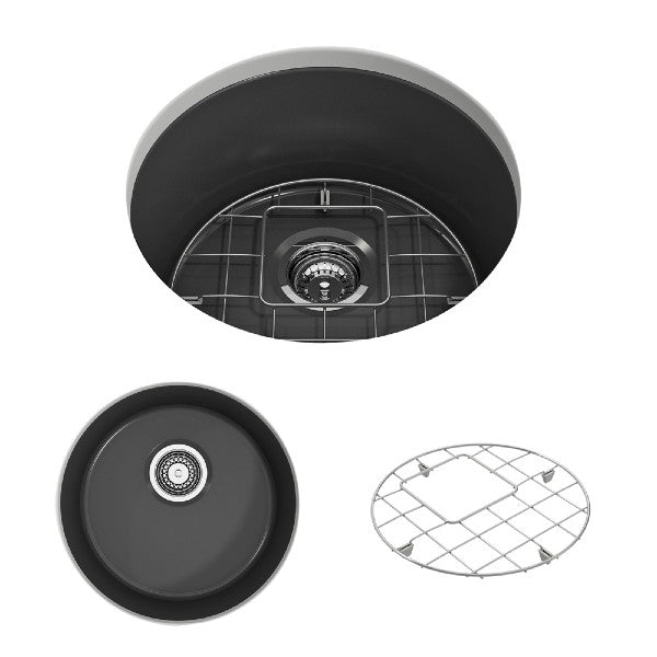 BOCCHI Sotto 18" Matte Dark Gray Round Single Bowl Fireclay Undermount Prep Sink