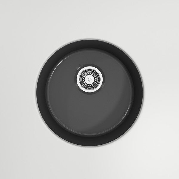 Sotto 18" Matte Dark Gray Round Single Bowl Fireclay Undermount Prep Sink By BOCCHI