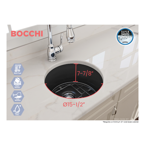 Bocchi Fireclay Undermount 18" Round Single Bowl Prep Sink Sotto Specification Sheet Click Here