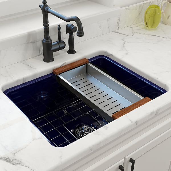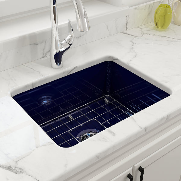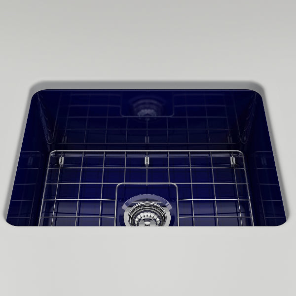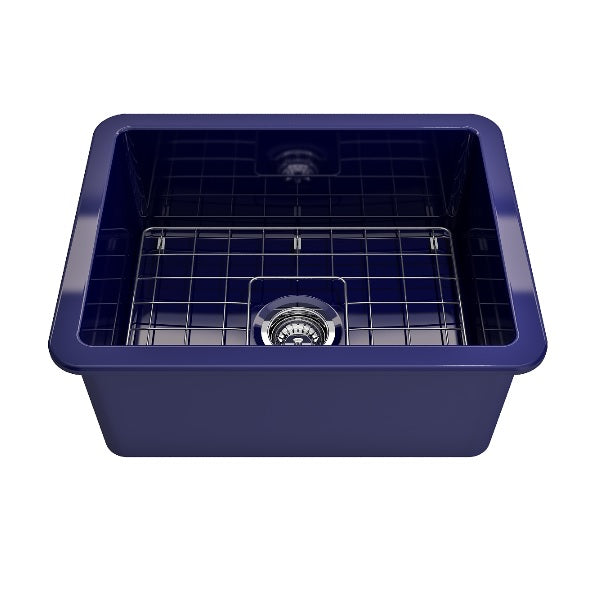 Sotto 24" Sapphire Blue Single Bowl Fireclay Dual-Mount Kitchen Sink with Protective Bottom Grid and Strainer by BOCCHI