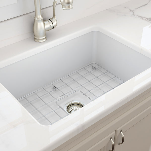 Sotto 27 Matte White Fireclay Single Undermount Kitchen Sink with FREE Bottom Grid and Strainer by BOCCHI
